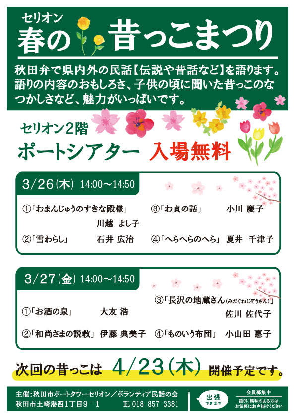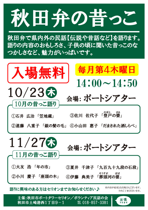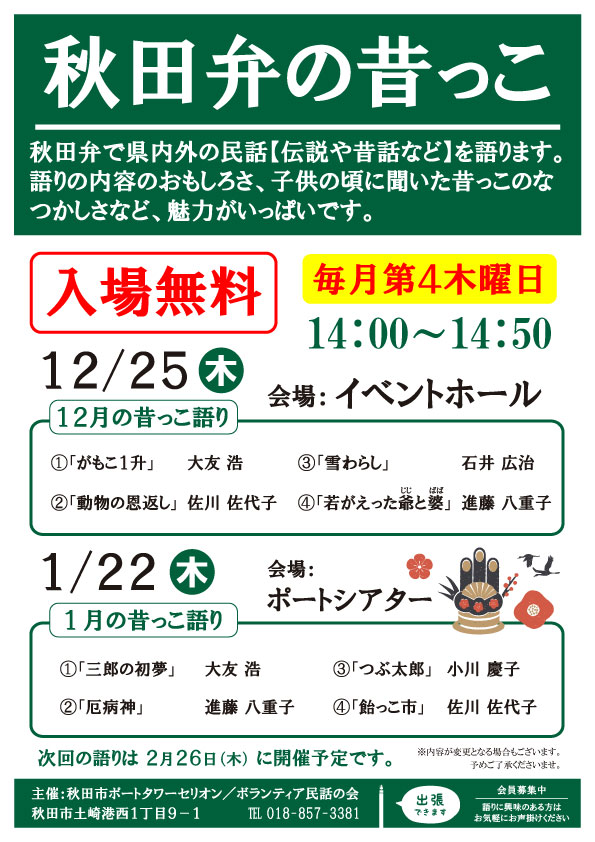 秋田弁で秋田の民話(伝説や昔話)を語ります。